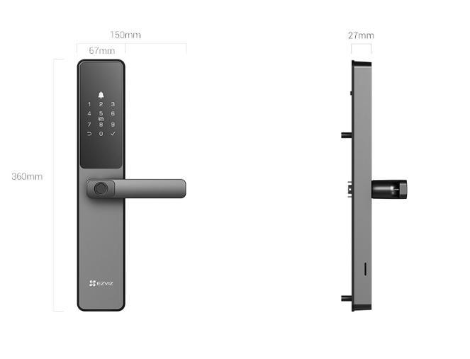 Unlocking Method: Fingerprint, passcode, proximity card, mechanical key, bluetooth key via EZVIZ App, temporary codes, remote unlock